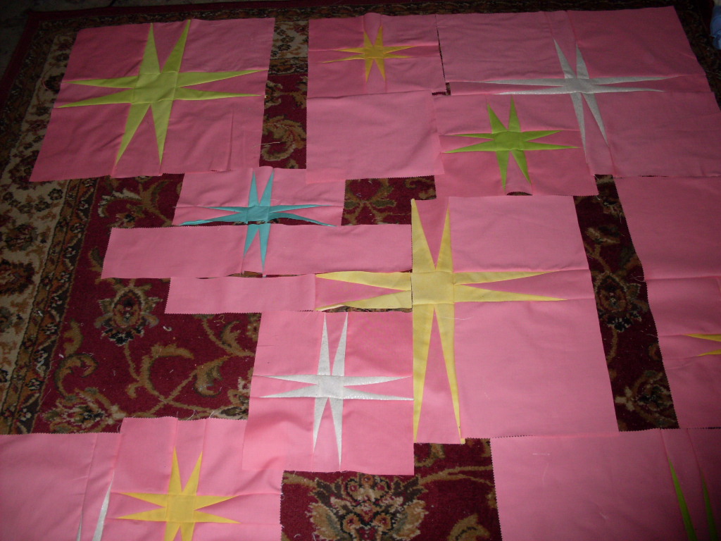 The directions given in the download are to to cut the star pieces (green) one half inch wider and longer than the back ground color, pink. This resulted in a lot of fabric cut off and into the scrap pile. I resized to make both pieces the same width. So far, no problems and little less into the scrap pile.
